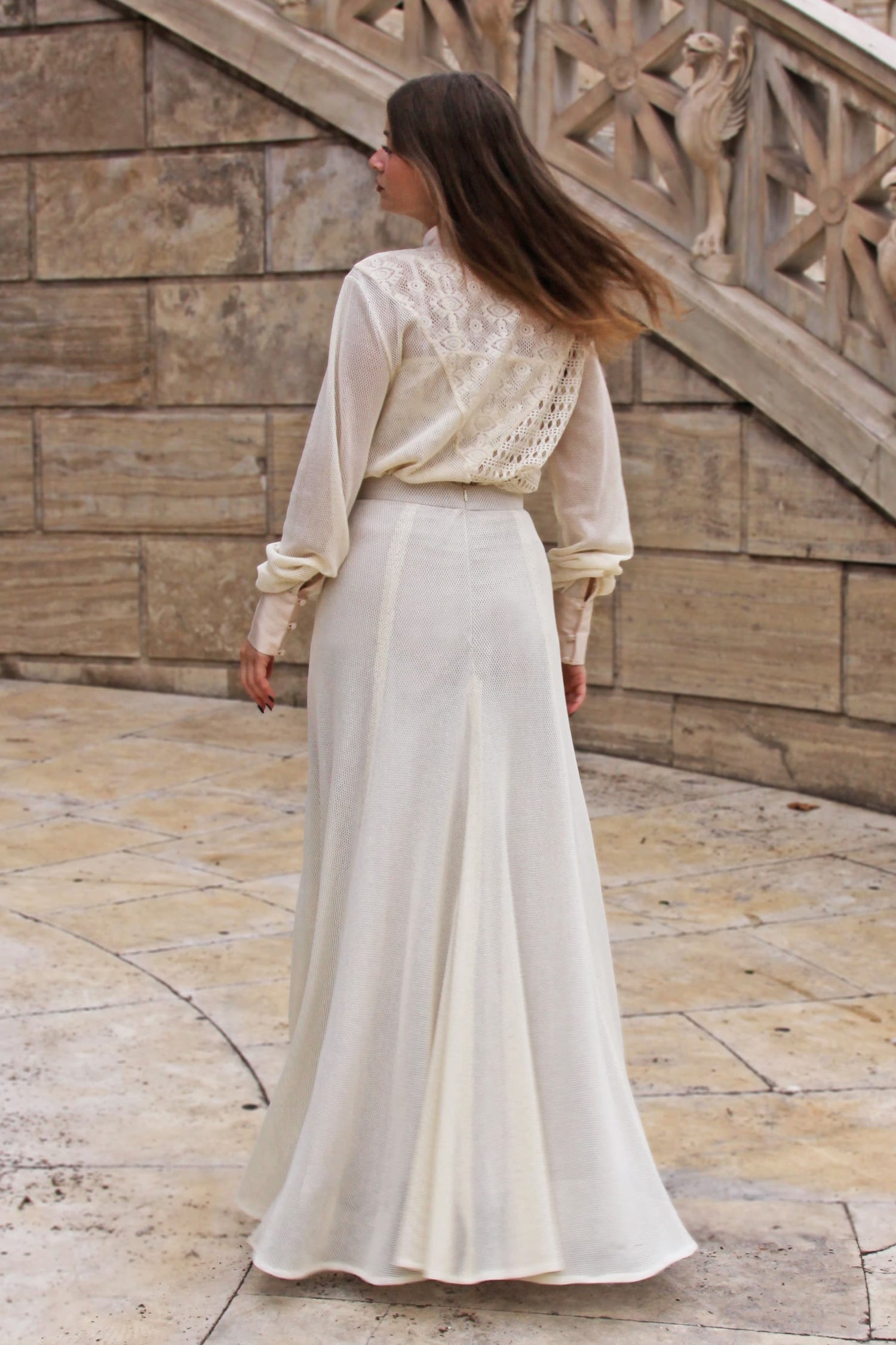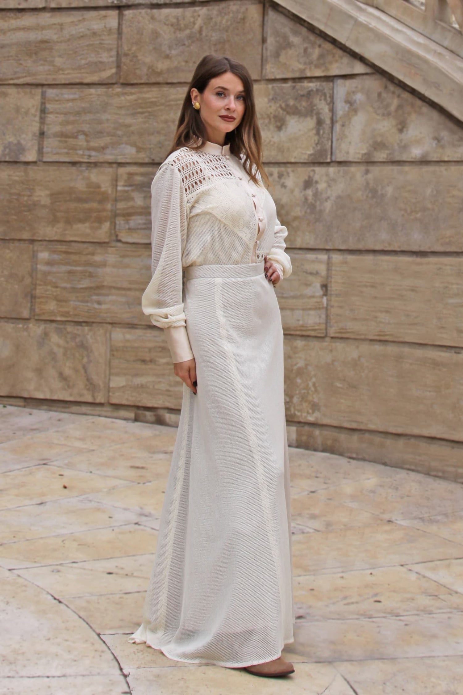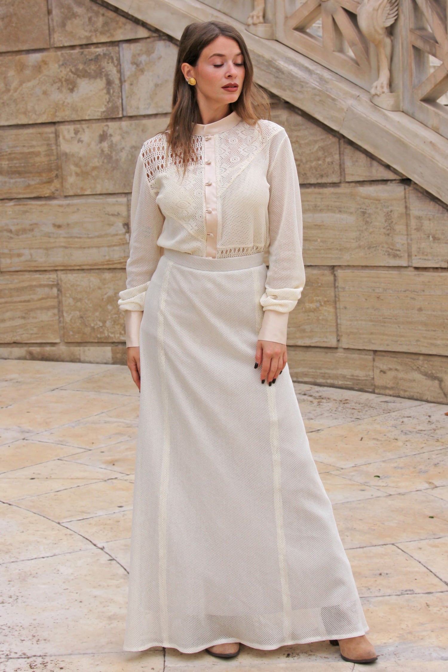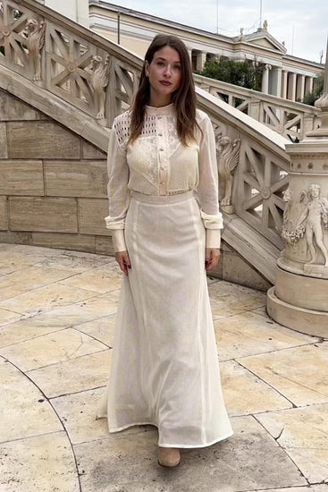 The Brianna Maxi Skirt will not leave you unnoticed. Its beige color, maxi length, slim-fit design, and flowing train create an elegant and distinctive look. You can wear it with sneakers, boots, or a pair of high heels.