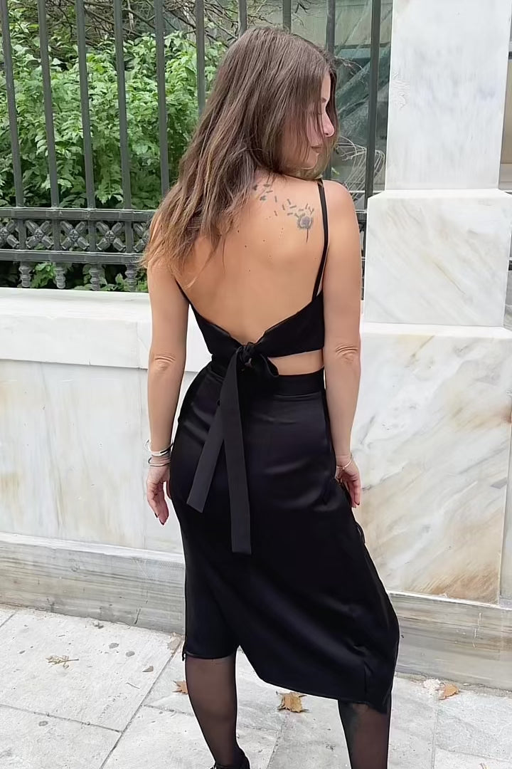 The Jessica Midi Skirt will not leave you unnoticed. The combination of airy natural satin fabric and a unique front design create an elegant and distinctive look. You can wear it with loafers, boots, or a pair of high heels.