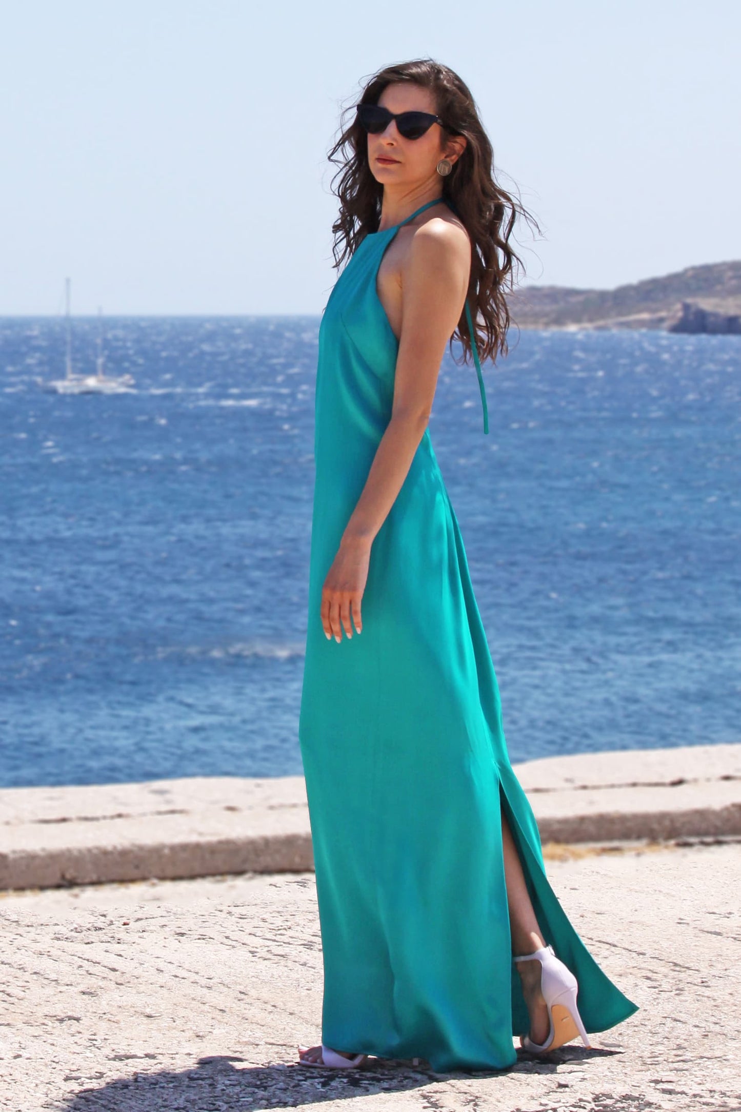 Olivia Dress is the perfect choice to feel unique and confident on any special occasion. With its minimal design, open back, back slit, and persian green satin fabric, you’re sure to stand out in style.